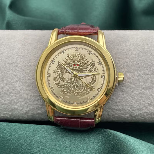 تصميم تنين محفور بدقة عالية ليمنح الساعة طابعًا فريدًا.